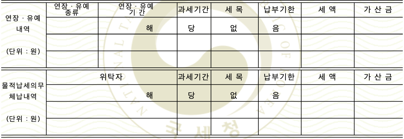 ● 발급일 기준으로 체납한 사실이 없는 경우 국세 완납증명서에는 해당 없음으로 표시됩니다.